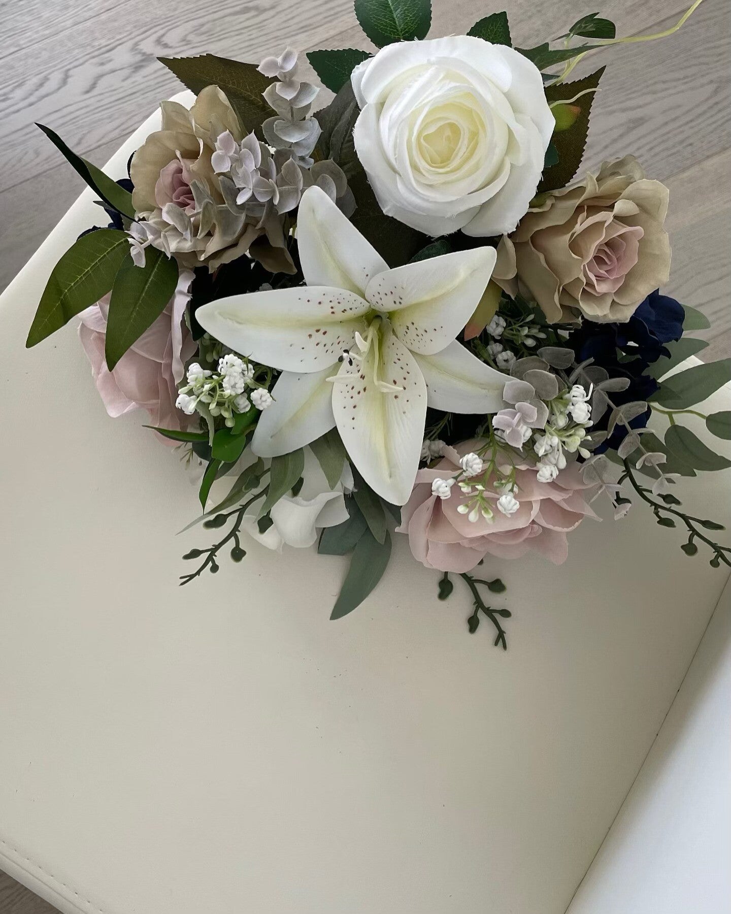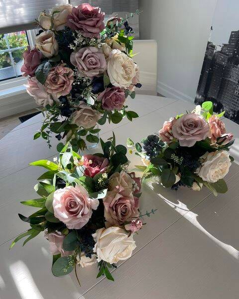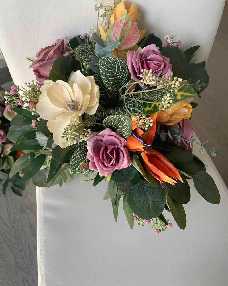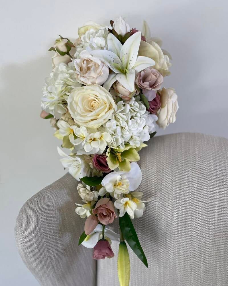 At Tuscani Faux Wedding Flowers our head designer comes to the table with 35 years if creative experience and caters to a world of different cultural design and floral knowledge. We only design with leading edge flower products and build bouquets with full stem count so photos get a beautiful presentation from any angle. She has travelled to several countries sourcing out supply chains that carry very high end realistic flowers and are often touched and smelled for authenticity.